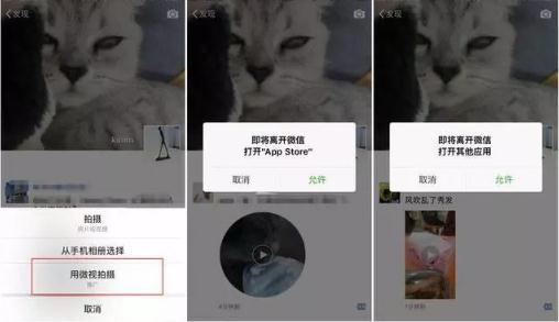 近日不少人發(fā)現在發(fā)微信(邯鄲微信開(kāi)發(fā))朋友圈時(shí),拍攝菜單欄多出一項「用微視拍攝」的選擇??雌饋?lái),微信向微視開(kāi)放了一個(gè)「超級入口」,但緊跟著(zhù)的「推廣」二字又讓事情看起來(lái)并不那么單純。