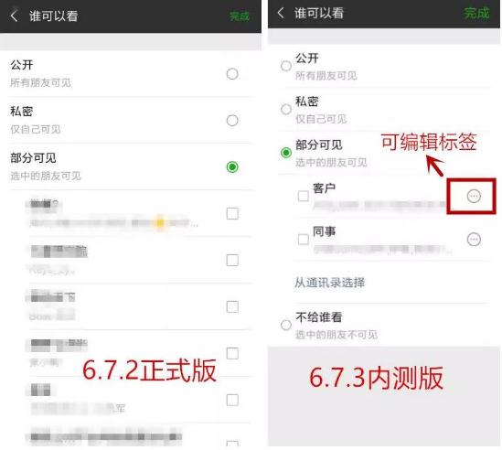 發(fā)布朋友圈時(shí),選擇「部分可見(jiàn)」后可以直接對標簽進(jìn)行編輯了,不需要再單獨去通訊錄里更改一遍。
