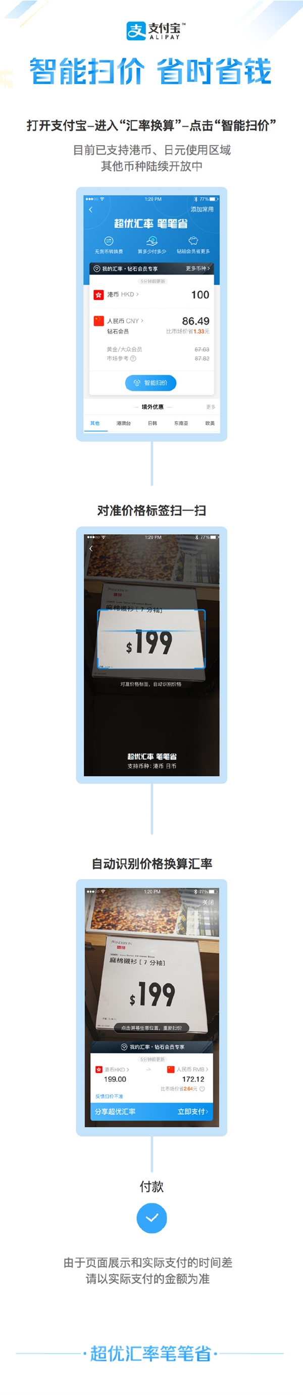 目前該功能已在中國香港和日本嘗鮮,正在當地旅游的小伙伴不放打開(kāi)支付寶體驗一下,將來(lái)其他國家、地區也會(huì )陸續上線(xiàn)這個(gè)功能。 ????