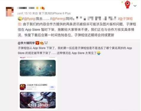 按照 iOS 的邏輯,子彈短信的下架符合規定。但還是很詭異,子彈短信一直以來(lái)都是和其他的內容方進(jìn)行合作,并不進(jìn)行內容生產(chǎn)。也就是說(shuō),被侵權方最先投訴的,至少是內容的刊登方,而不是子彈短信這個(gè)三手的合作方。