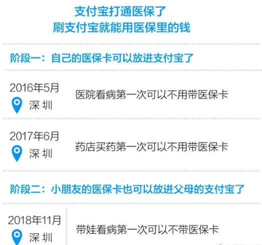早在 2016 年 5 月,支付寶在深圳就打通了醫保功能,刷支付寶就能用醫保里的錢(qián),去年 6 月升級后,藥店買(mǎi)藥也可以不用帶醫???,如今帶娃看病可以不帶醫??ǜ蔷哂欣锍瘫饬x。