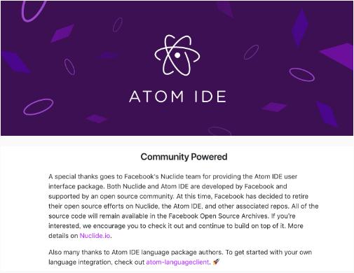 目前這些項目的 GitHub 倉庫已被官方歸檔,處于只讀狀態(tài)。Nuclide 和 Atom IDE 的官網(wǎng)也相繼掛出了“退休”公告。
