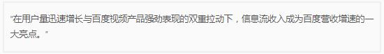 這句評價(jià)中不僅有對百度信息流業(yè)務(wù)的增速肯定,也有百度信息流業(yè)務(wù)增長(cháng)背后的邏輯——用戶(hù)量與信息流之間的相互協(xié)同,給百度移動(dòng)端帶來(lái)的機會(huì )。