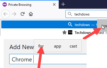 現在在 Chrome 中,如果用戶(hù)訪(fǎng)問(wèn) Omnibox 或中的文本字段并輸入內容,則會(huì )在用戶(hù)輸入時(shí)彈出文本建議,就像他們在 Firefox 中為我們所做的那樣(請查看下面的截圖)。