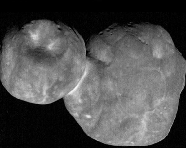 這張照片是“新視野號”在 1 月 1 日近距離拍攝的,它的直徑 33 公里,呈二裂片結構,類(lèi)似一個(gè)微紅色雪人。