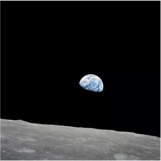 阿波羅 8 號宇航員在繞月軌道上拍攝的地球圖像。人類(lèi)有史以來(lái)第一次親眼目睹了自己居住的星球從另一個(gè)天體的地平線(xiàn)上升起。