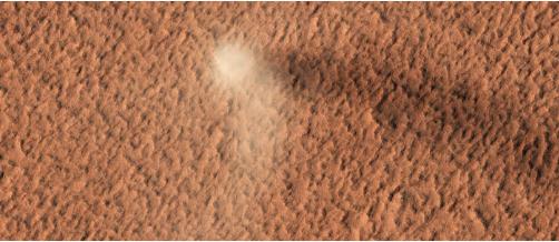MRO 不是尋找塵埃魔鬼的唯一火星機器人。2016 年,“機遇號”火星探測器曾捕捉到了塵魔的美麗地面視圖。