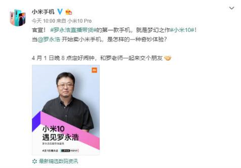 3 月 31 日上午,小米手機發(fā)布海報,稱(chēng)小米 10 成為羅永浩抖音帶貨的第一款手機。而據知情人士介紹,羅永浩當晚銷(xiāo)售的手機不僅有小米 10,還包括小米 10 Pro。