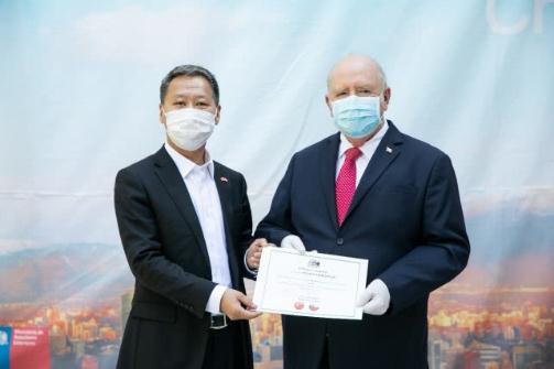 智利駐華大使路易斯·施密特親自交接抗疫醫療物資