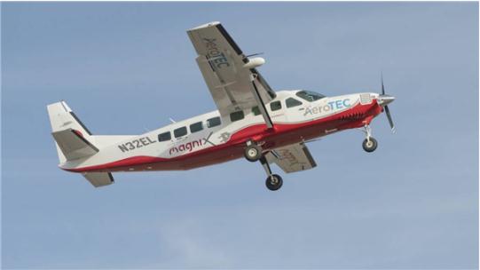 據了解,該飛機名為 eCaravan,在華盛頓的一條跑道上起飛后飛行了 28 分鐘。eCaravan 發(fā)動(dòng)機制造商 MagniX 與航空公司 AeroTEC 合作推出,可搭載 10-14 人,續航高達 912 海里(1689 公里)。