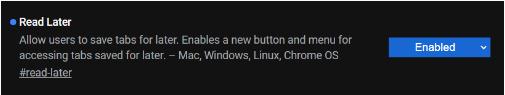"稍后閱讀"功能將 "允許用戶(hù)保存標簽頁(yè)以備日后使用" 該功能除了會(huì )帶來(lái)新的(大概率位于工具欄)按鈕外,還有一個(gè)新的菜單,支持列表顯示這一新功能暫時(shí)只面向桌面版 Chrome 瀏覽器。