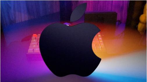 這個(gè)動(dòng)畫(huà)就是黑色的蘋(píng)果 LOGO 會(huì )像使用 MacBook 屏幕一樣進(jìn)行開(kāi)閉。而且當打開(kāi)的時(shí)候,背面會(huì )有色彩放出,這就像是一個(gè)明亮發(fā)光的屏幕。你可以將 USDCZ 文件放在 AR 中 360 度查看,這是在 iOS12 的更新中引入的。