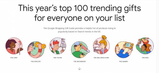 谷歌周三發(fā)布了他們有史以來(lái)的第一份“Top 100 熱門(mén)禮品 ”指南,也就是《谷歌購物禮品指南 2020》。這個(gè)網(wǎng)站將節日季購買(mǎi)量最大的產(chǎn)品進(jìn)行了集中展示。Google 的“Top 100 熱門(mén)禮品 ”指南包括了 The Chef、The Athlete、The Techie、The Decorator、The Wellness Guru、The Gamer 和 The Kids 等類(lèi)別。