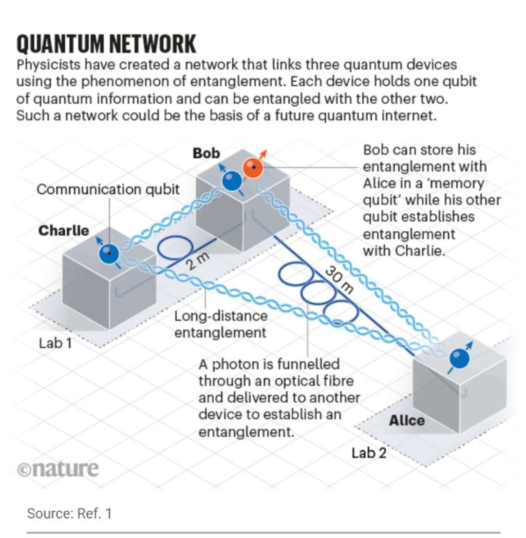 據《自然》新聞 2 月 17 日報道,荷蘭代爾夫特理工大學(xué)近日在量子網(wǎng)絡(luò )領(lǐng)域有了新進(jìn)展。該校物理學(xué)家將三個(gè)量子設備連接在一個(gè)網(wǎng)絡(luò )中,向未來(lái)的量子互聯(lián)網(wǎng)邁出重要一步。此前,已有其他研究人員演示過(guò)三節點(diǎn)量子網(wǎng)絡(luò )的原理,但《自然》新聞稱(chēng)新方法更容易實(shí)現實(shí)際應用。