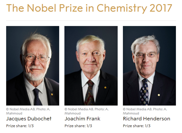 ▲2017年的諾貝爾化學(xué)獎授予三位開(kāi)發(fā)冷凍電鏡技術(shù)的科學(xué)家(圖片來(lái)源: The Nobel Prize in Chemistry 2017. NobelPrize.org. Nobel Media AB 2021. Thu. 13 May 2021. )