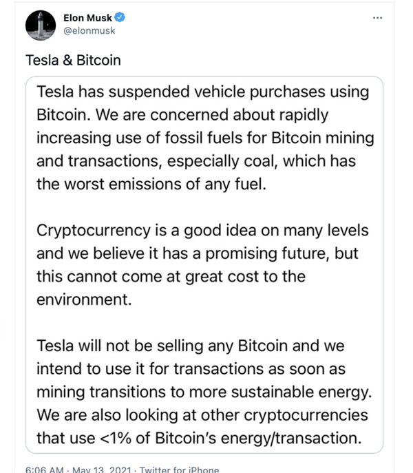 此次比特幣暴跌,從而帶動(dòng)加密幣大跌,多數分析人士將直接原因歸于特斯拉創(chuàng )始人埃隆 馬斯克的“叛變”。