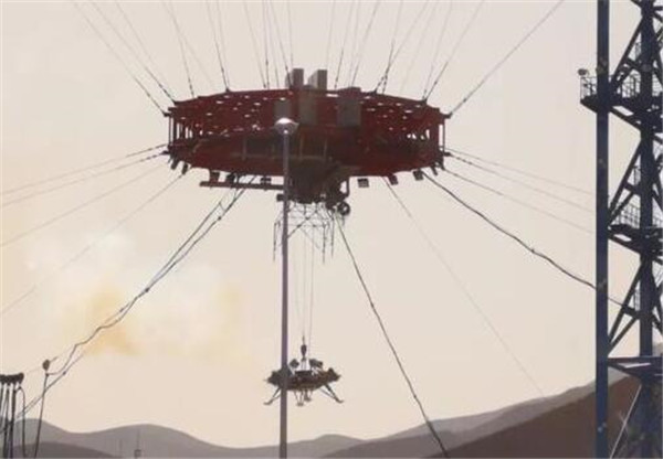 圖注:2019年11月14日,我國在河北省懷來(lái)縣試驗場(chǎng)模擬了天問(wèn)一號著(zhù)陸器在火星環(huán)境下的懸停、避障和緩速下降的過(guò)程。