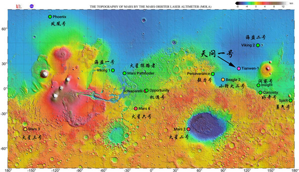其中,前蘇聯(lián)共嘗試發(fā)射17次火星探測器,成功和部分成功僅5次;美國向火星發(fā)射了23次探測器,其中成功了16次,失敗了7次;歐空局向火星發(fā)射了2次,成功了2次;俄羅斯向火星發(fā)射了2次,失敗了2次;日本向火星發(fā)射了1次,失敗了1次;印度向火星發(fā)射了1次,成功了1次;阿聯(lián)酋向火星發(fā)射了1次,成功了1次;中國向火星發(fā)射了1次,成功了1次。因此,火星有探測器墳場(chǎng)的稱(chēng)呼。