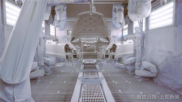 特斯拉工廠(chǎng)內部生產(chǎn)線(xiàn)。 孟雨涵 攝