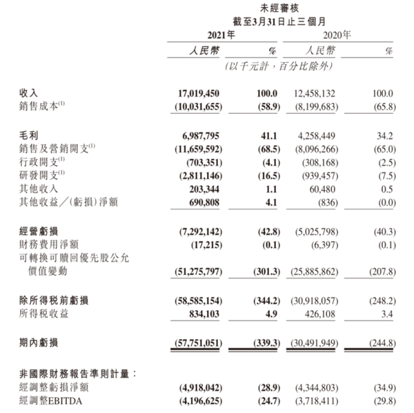 而主要因為這一季度最大手筆的營(yíng)銷(xiāo)投入,快手也迎來(lái)了近年來(lái)最大的單季虧損。根據財報,經(jīng)調整凈虧損為49.18億元,同比增長(cháng)13.2%,比上個(gè)季度增長(cháng)了近6倍。不過(guò),與此同時(shí),快手的毛利率由去年同期的34.2%上升到了41.1%。