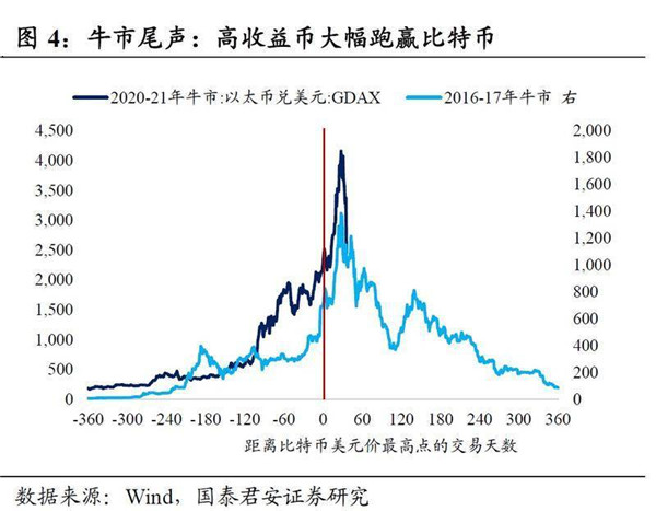 還有另一重似曾相識:在虛擬貨幣牛市的上半場(chǎng),比特幣收益一馬當先;而當行情擴散,其他高收益數字幣大幅跑贏(yíng)比特幣,場(chǎng)內加杠桿行為加劇,便意味著(zhù)下半場(chǎng)到來(lái)了。