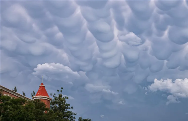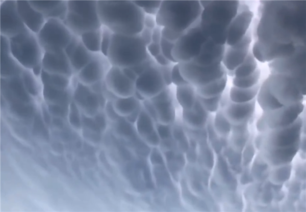 一般來(lái)說(shuō),在看到這種云,確實(shí)相當嚇人,很多人根本就沒(méi)有見(jiàn)過(guò),而它的形成主要是在極端性氣候的時(shí)段,主要是在積雨云下方形成的乳狀型積云,概念就是“當下沉氣流中溫度較冷的空氣與上升氣流中溫度較暖的空氣相遇時(shí),將會(huì )形成如同一個(gè)個(gè)袋子形狀的乳狀云”。