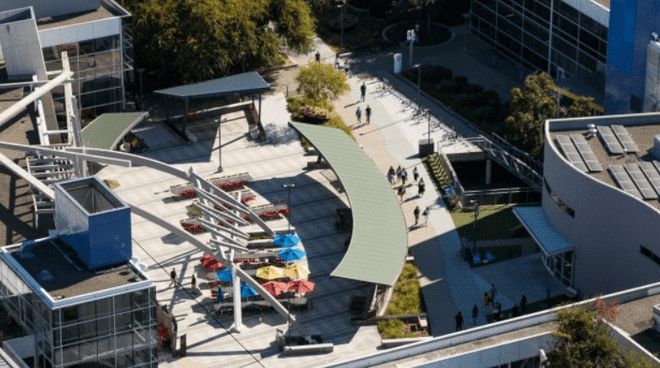 (從空中拍攝的谷歌總部建筑,它位于美國加州圣克拉拉縣的山景城。)