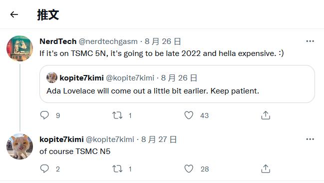 Kopite 還表示 Ada Lovelace GPU 將比預期更早到貨,盡管由于他們還沒(méi)有首先確認時(shí)間表,我們仍然沒(méi)有具體的日期。有傳言稱(chēng),Ada Lovelace GPU 將在 2022 年第二季度和 2022 年第四季度之間到來(lái),因此,如果 Kopite 預計 NVIDIA 推遲生產(chǎn)并提前一點(diǎn)開(kāi)始批量生產(chǎn),那么 2022 年第二季度的時(shí)間表可能是未來(lái)要記住的時(shí)間表。