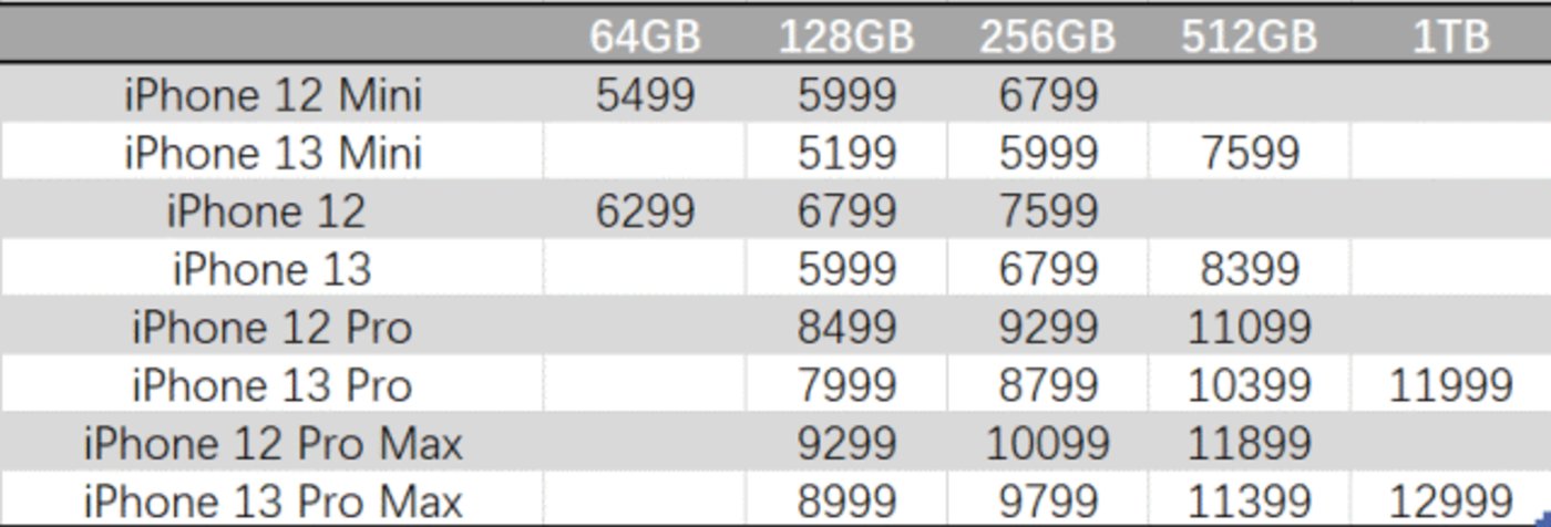 具體而言,iPhone 13mini、iPhone 13 起步容量 128GB 較上一代相同存儲版本降價(jià) 800 元;iPhone 13 Pro 國行起售價(jià)降低 500 元,iPhone 13 Pro Max 起售價(jià)降低 300 元。