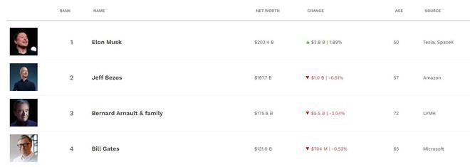 財聯(lián)社 9 月 28 日電,福布斯實(shí)時(shí)富豪榜數據顯示,特斯拉 CEO 馬斯克的身價(jià)突破 2000 億美元,達到 2034 億美元,目前位居榜首。馬斯克已成為繼貝索斯、阿爾諾后,第三位身價(jià)達到 2000 億美元的富豪。.