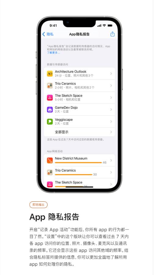10 月 12 日消息,近日,軟件后臺索取敏感信息受到關(guān)注,據蘋(píng)果隱私官方網(wǎng)站顯示,即將推出 App 隱私報告功能,據了解,該功能可在系統內直接將軟件后臺行為數據轉化為可視化報告。