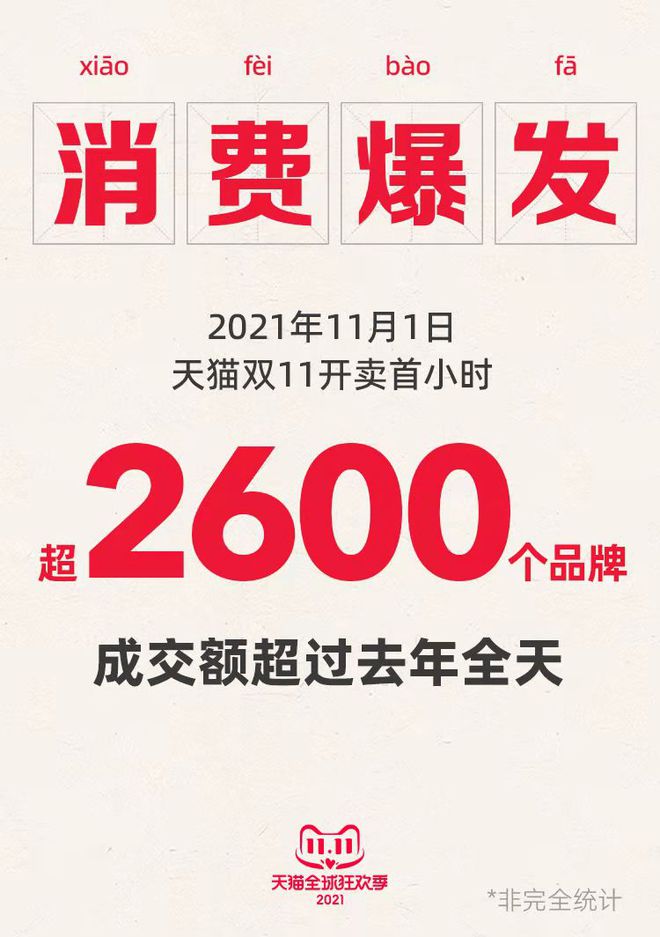 據不完全統計,開(kāi)售首小時(shí),超 2600 個(gè)品牌的成交額超過(guò)去年全天。