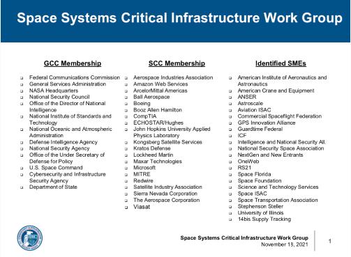這個(gè)工作組隸屬于 DHS 的關(guān)鍵基礎設施合作咨詢(xún)委員會(huì )(CIPAC),其與會(huì )公司名單直到現在才被公開(kāi)。DHS 網(wǎng)絡(luò )安全和基礎設施安全局(CISA)國家風(fēng)險管理中心(NRMC)負責人 Bob Kolasky 跟 Via Satellite 分享了該名單。
