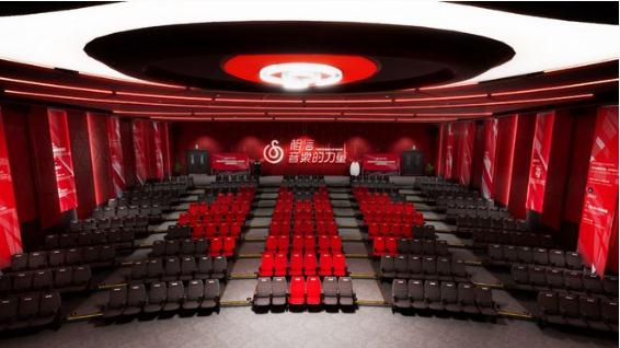 除了三個(gè)“丁磊”同時(shí)敲鑼外,整個(gè)會(huì )場(chǎng)的布置也隨處體現音樂(lè )熱愛(ài)者的元素,不僅座位是愛(ài)心的形狀,還有后排是“相信音樂(lè )的力量”的閃爍燈牌,舞臺上是轉動(dòng)的黑膠唱片。更有意思的是,參與觀(guān)禮的嘉賓可以操控自己的“數字分身”,與 AI 虛擬人“丁磊”一起完成交流、合影、跳舞等等互動(dòng)。
