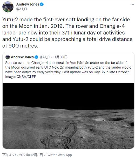需要指出的是,目前玉兔二號已在月面上行駛了 840 米(2756 英尺)。但由于它主要依賴(lài)于太陽(yáng)能驅動(dòng),所以會(huì )定期轉入休眠狀態(tài),然后在重見(jiàn)天日時(shí)繼續開(kāi)展相關(guān)工作。
