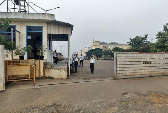 圖2:富士康印度分公司工廠(chǎng)正被關(guān)閉,入口處可以看到私人保安