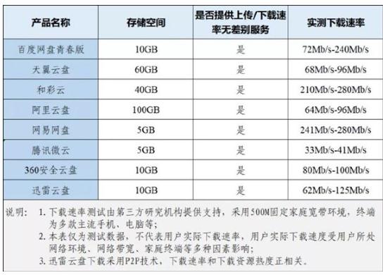 除了百度網(wǎng)盤(pán)之外,其他的天翼云盤(pán)、和彩云、阿里云盤(pán)、騰訊微云也都已經(jīng)整改完畢,均能提供無(wú)差別速率服務(wù),其中存儲空間最小的為5GB,最高可享受100GB空間。