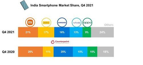 2021年印度智能手機銷(xiāo)量出爐:小米第一