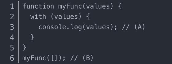 當 ES6 方法被添加到 JavaScript 中時(shí),如果用 Array(B行)來(lái)調用它,它就會(huì )失效。該語(yǔ)句將 Array 的所有屬性變成了局部變量。其中一個(gè)是繼承的屬性。因此,A行中的語(yǔ)句已記錄,不再是參數