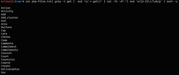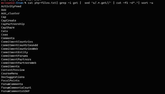 cat php-files.txt| grep -i get | sed 's/.*.get//' | sort -u