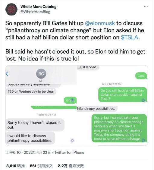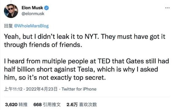 這一次是馬斯克直接在推文中承認,他曾私下“質(zhì)問(wèn)”蓋茨是不是做空了特斯拉股票。