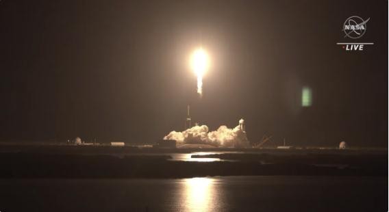 在佛羅里達州卡角 39A 發(fā)射臺,SpaceX 公司一枚“四手”獵鷹 9 號火箭托舉著(zhù)四名宇航員以及“自由號”龍飛船前往國際空間站。