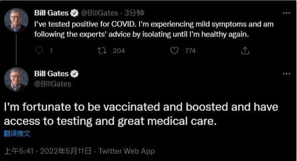 據央視報道,比爾?蓋茨在今日在社交平臺上表示,他的新冠檢測結果呈陽(yáng)性,而且此前他已經(jīng)接種了新冠疫苗加強針。蓋茨表示,他的新冠癥狀輕微,正在聽(tīng)從專(zhuān)家的建議進(jìn)行隔離直到恢復。