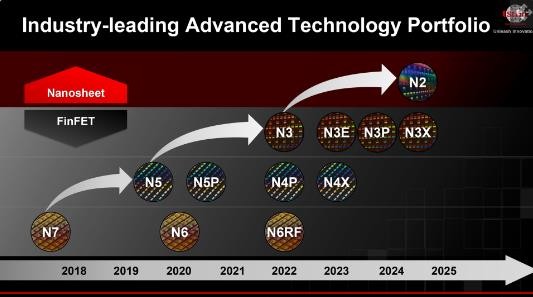 臺積電先進(jìn)制程進(jìn)展順利,3nm 將在今年下半年量產(chǎn),升級版 3nm(N3E)制程將于 3nm 量產(chǎn)一年后量產(chǎn),即 2023 年量產(chǎn),2nm 預計于 2025 年量產(chǎn)。