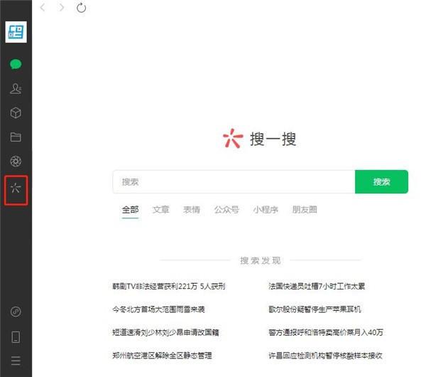 1.電腦打開(kāi)微信面板,點(diǎn)擊左側的搜一搜圖標進(jìn)入搜一搜的頁(yè)面。