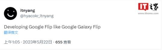 爆料人士 @itnyang 發(fā)推稱(chēng),谷歌內部正在討論將翻蓋版 Pixel Flip 折疊屏手機推向市場(chǎng),但具體名稱(chēng)還未確定;預計這款機型于 2024 年推出,搭載 Tensor G3 芯片,有望采用三星改進(jìn)后的 4nm 量產(chǎn)工藝,售價(jià)預計低于 Pixel Fold 的 1799 美元(IT 之家備注:當前約 12629 元人民幣)。