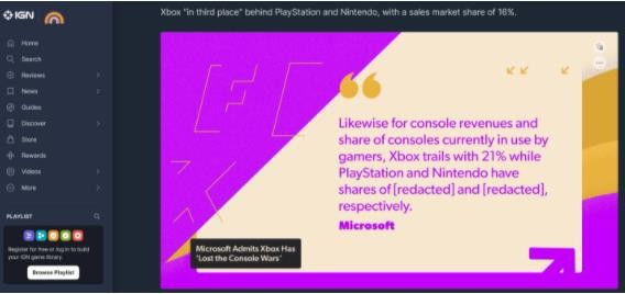 在微軟與聯(lián)邦貿易委員會(huì )就“收購動(dòng)視暴雪一案”的法庭訴訟首日,微軟在法庭中承認“Xbox 已經(jīng)輸掉了主機戰爭,而競爭對手有望繼續主導市場(chǎng)”。
