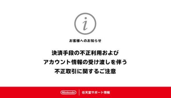 任天堂官方今日發(fā)布用戶(hù)賬號安全公告,提醒用戶(hù)注意涉及傳遞賬戶(hù)信息的未經(jīng)授權交易。