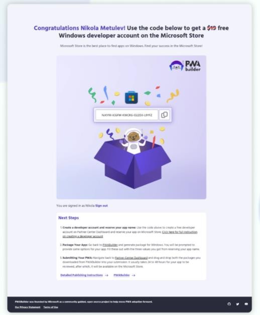 微軟近日發(fā)布新聞稿,宣布和 PWABuilder 團隊合作,在 9 月 15 日之前免收 19 美元注冊費用,鼓勵開(kāi)發(fā)者在 Microsoft Store 上發(fā)布 PWA 應用。
