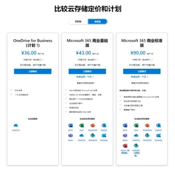IT之家注意到,國內 OneDrive for Business(計劃 1)每個(gè)用戶(hù)的價(jià)格為每月 36 元,提供最多 1TB 的云存儲,根據用戶(hù)數量可選擇增加到 5TB。此外,微軟還為其兩個(gè) Microsoft 365 Business 計劃提供每個(gè)用戶(hù) 1TB 的存儲空間。